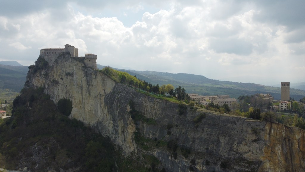 Il Castello di San Leo svetta tra le colline della Valmarecchia, situato a poca distanza dal Monte Titano (San Marino) e a 30km dalla riviera di Rimini! Oltre che per le sue peculiarità storiche è particolare per la sua posizione posta in cima allo sperone roccioso del monte.